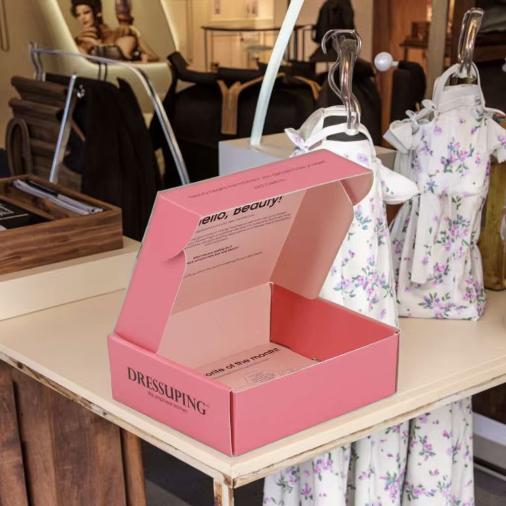 Luxury Pink Personalized Kraft Paper Rigid Boxes Corrugated Cardboard Clothing Gift Mailer Box